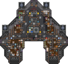 Описание: Шахтерское судно, в котором оборудован БСС двигатель STLA-25 с возможностью БСС скачка на 2.5 КМ на пару с MS-225 генератором щита. Обустроен мостик, кухня, жилые помещения, полноценный атмос с оборудованием для атмосферного техника. Имеются 3 набора снаряжения утилизатора. Имеет Инженерский, утилизаторский техфаб и автолат. На шаттле есть переработчик руды. | 2 AKA 90 MM и 4 L85 20 MM, генератор щита MS-255. | Цена: 168 200 $ | ||||