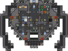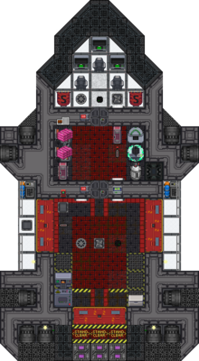 Описание: Имеется патронфаб и зарядник для корабельных батарей. Имеется медицинская кровать и бриг для 2 заключенных с медфабом. Обустроен арсенал с 2 ЭМИ-пушками и краммерами. Внимание. Подстанция корабля МОЖЕТ быть откручена ИЗВНЕ. Условно говоря, вам может открутить станцию клещ на обшивке шаттла и оставить вас без света. Однако, вы можете переключить генераторы повторно и свет появится и без подстанции. Учитывайте это, при покупке шаттла. | 2 импульсных лазера,MS-225 | Цена: 95 000 $ | |||